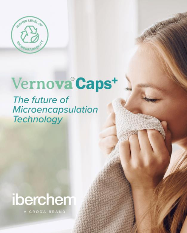 除此之外,爱伯馨还推出创新性产品——Vernova® Caps+。该产品是其2022年推出的可生物降解微胶囊技术Vernova® Caps的升级版。升级后的产品在生物降解性、留香性能、香精负载率以及配方稳定性等方面拥有更卓越的表现,为全球消费者带来兼具绿色环保与持久留香的解决方案。